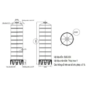 Thông số bồn nước inox Đại Thành 20000 lít đứng SUS 304